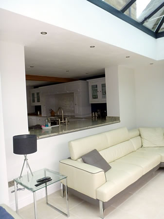 Through a combination of converting some old stone stables to the rear and creating additional space to the existing house, a light filled open plan kitchen dining and living area has been created, together with new flexible office space within the garden.