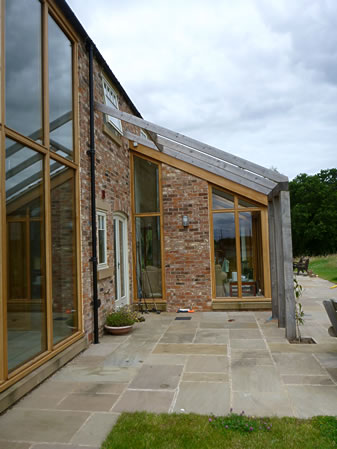 This new build dwelling was created on the site of some former redundant agricultural buildings in open countryside. The existing farmhouse was converted into a workspace, and it was important that the new build did not compete with the traditional character of the house.